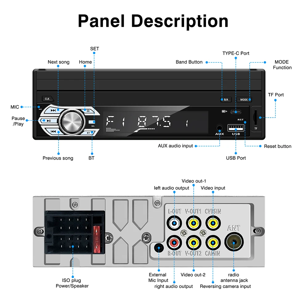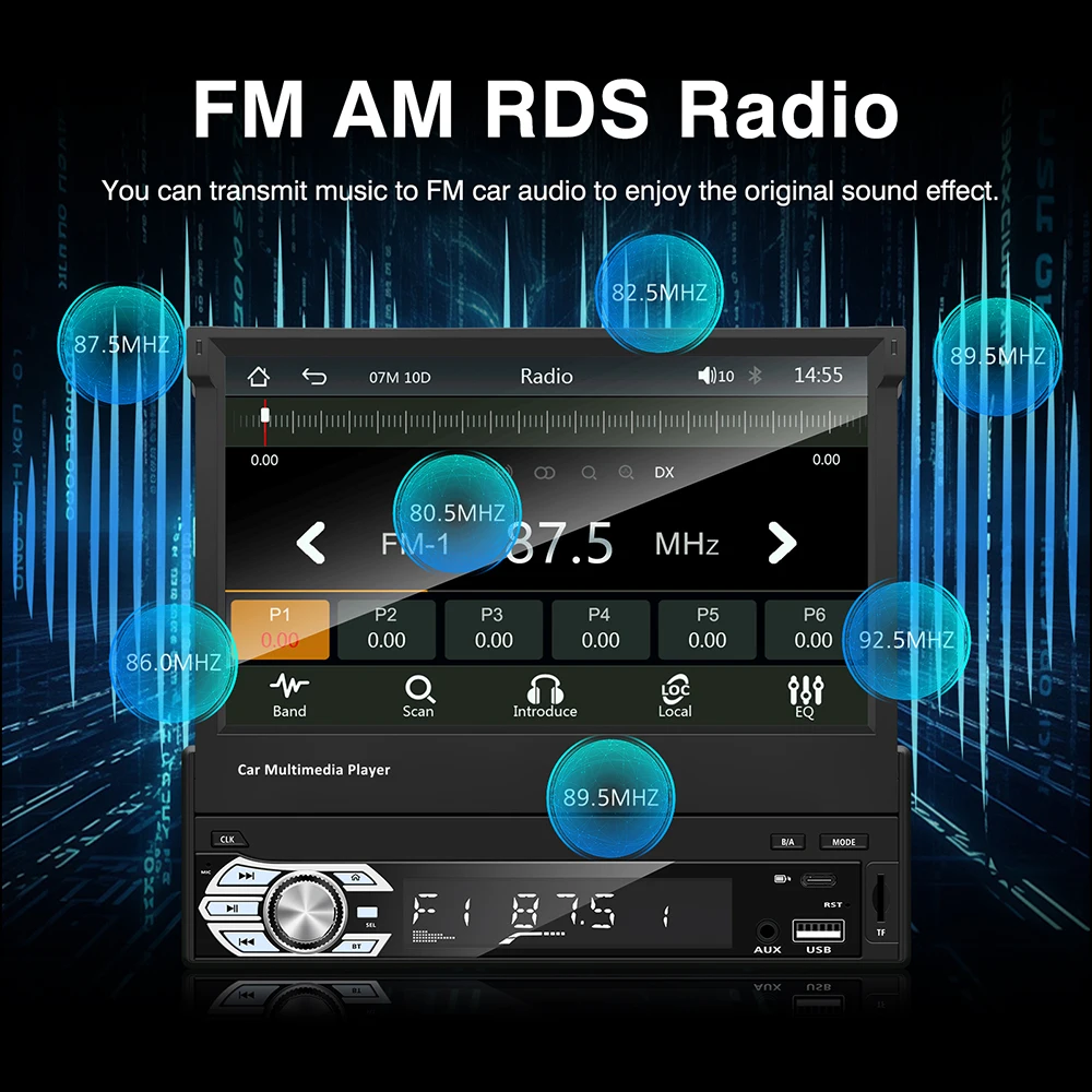 1 7-inchuniversal retractable screen retractable car stereo HD touch screen small body, instant response, no lag.